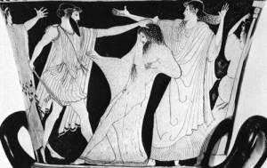 Pero volvamos a Agamemnón. Después de todo lo que ha pasado guerreando en un país extranjero (digamos, por ejemplo, Turquía), no imagina que la muerte le espera en su propia ciudad. Imaginemos que detrás de la puerta de los leones. Su esposa (a la que también se ha ganado en la guerra, que por amor nuestro rey no logró nada) no le espera precisamente con los brazos abiertos. También ella ha aprovechado el tiempo y tiene como compañero nada más y nada menos que a Egisto, enemigo natural de los atridas. Clitemnestra (que es así como se llama la traidora mujer de nuestro rey) no le perdona, entre otros deslices, que haya matado a su hija siguiendo las indicaciones de los dioses sanguinarios y lascivos que gobernaban el mundo antes de Allah y Yaveh.