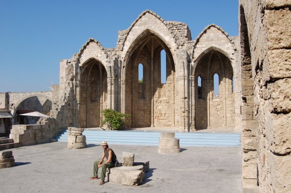 Es imposible saber lo que pensaban los caballeros de Rodas, aunque tal vez no eran muy diferentes a nosotros, turistas del siglo XXI. En una de las calles más bellas de la isla, extrañamente liberada de tiendas y postales, se encuentran los albergues de la lengua franca, germana, española… En ellos se alojaban los jóvenes nobles del siglo XV que siguiendo la tradición de las cruzadas empleaban su juventud guerreando contra el moro. Seguramente muchos eran también rubios y se quemaban tan fácilmente con el sol como los guiris de ahora. Para ellos esta experiencia debía ser algo así como nuestro año erasmus, y quién sabe si en los largos días y noches del medievo, a la espera de que llegaran los malvados turcos, resistirían la tentación de bañarse en las playas desiertas o beber vino en las tascas de la ciudad. Igualito que ahora, ¿no?