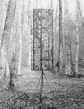 Imágenes de Perejaume reproducidas sin su consentimiento. El primero es un paisaje tapizado con cuadros y el segundo es un postalero lleno de pequeños espejos que reflejan el bosque que los rodea. La idea del viajero coleccionista procede de la tan fascinante como neurótica Estrella de Diego, profesora de arte contemporáneo de la UCM.