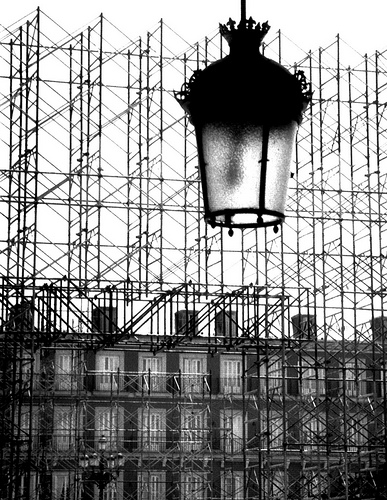 Si, insatisfecho con la respuesta, alguno apoya el ojo en la rendija de una empalizada, ve grúas que suben otras grúas, armazones que cubren otras armazones, vigas que apuntalan otras vigas.
