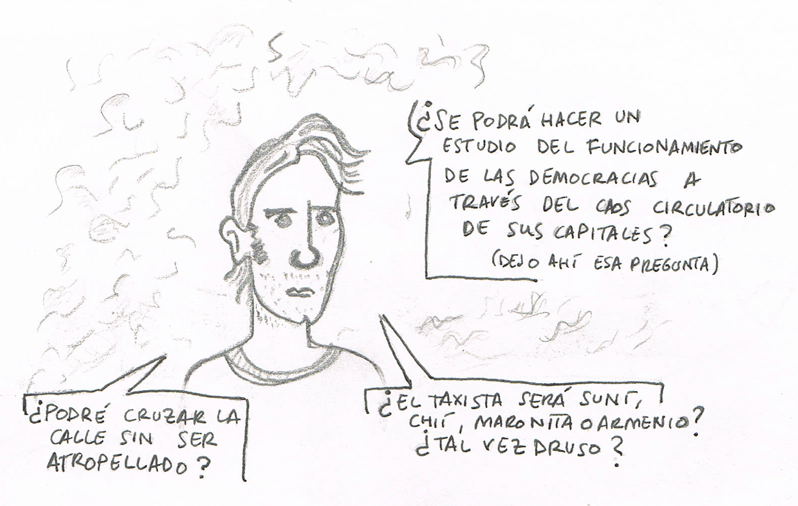 Al parecer, tal y como decía el libro que tenía entre las manos, el sistema político del Líbano se definía como una democracia consociativista. “Vaya palabro”, pensó apartando su mirada por un momento del texto y dejando que se perdiera en el tráfico que rodeaba al taxi. “Aunque, por otra parte, ¿cómo definir un país tan complicado sin usar expresiones complejas?”