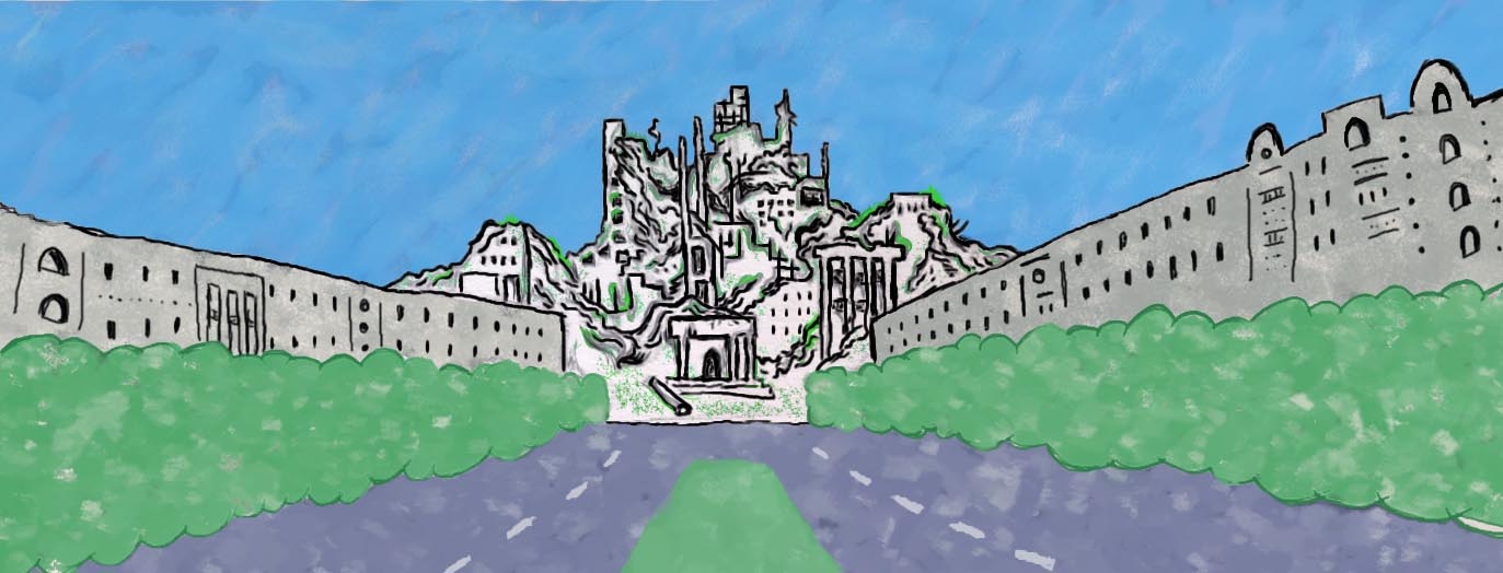Personalmente, lo que me atrae de este lugar no es su belleza (inexistente) sino cómo su volumen dibuja con precisión las ideas hinchadas de sus creadores. Si yo fuera un dirigente rumano, moderno y democrático, permitiría que el pueblo entrara en bandada y destruyera el palacio para, después, abandonarlo a su suerte, dejando que se fuera desmoronando hasta formar una montaña urbana, una especie de zigurat contemporáneo que con el paso de los años se fuera llenando de hierba y árboles (y puede que también con los perros que viven en manadas en las calles) hasta crear un nuevo espacio a medio camino entre la naturaleza y la memoria. ¿No sería bonito, recuperar para la ciudad y el medio ambiente un lugar arrebatado por las ideas megalómanas del poder? Dudo que con la edad que tengo y mis estudios vaya nunca a presidir Rumanía, pero al menos puedo dibujar cómo quedaría y esperar que alguien realmente importante destruya de una vez este inmenso dislate. Creedme si os digo que la Historia del Arte no lo va a echar en falta.