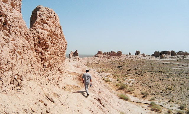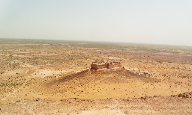 Aquel desierto podría muy bien ser el de la novela de Dino Buzzati. Al fin y al cabo, tártaro era el nombre genérico con el que los rusos definían a los pueblos túrquicos de Asia Central, y yo me encontraba en plena Tartaria, en Uzbekistán, al norte de Khiva. Y si ese era el desierto de los tártaros, las ruinas desde las que lo miraba (el castillo de Ayaz Qala, contruido hacia el siglo IV para evitar el ataque de los nómadas), podría también haber sido alguna vez esa bastión remoto del Imperio, la fortaleza Bastiani. En ella el teniente Giovanni Drogo, el protagonista de la novela, había desgranado los mejores años de su vida esperando que algo que justificara su espera surgiera de la nada.