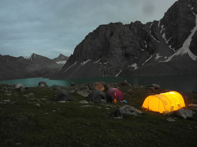 La primera persona que vi al llegar fue una turista sueca, muy rubia ella. Creo que se asustó de mi cara de a angustia y mi desorden capilar. Cuando le expuse mi problemática, me indicó que preguntara a la encargada, una simpática kirguís con un inglés estupendo y una actitud tan amable que me enamoré inmediatamente de ella. Al contrario de lo que me había indicado todo el mundo, aquella mujer no solo tenía una tienda de campaña y un saco de dormir para alquilarme, sino también esterilllas para hacer más agradable mi estancia en la alta montaña. Además, por un precio más que módico, me preparó también la cena y el desayuno. Nunca me alegré más de vivir en un mundo preparado para el turismo.