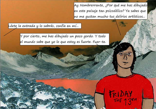 Estaba salvado, y todo por no hacer caso de los consejos de la gente ni de mi sentido común. Cuando pude al fin tumbarme en mi flamante tienda de campaña me di cuenta de que el corazón me latía rapidísimo, un poco por el esfuerzo físico, otro poco por la altura y un poco también a causa de la ansiedad. Fue allí, tumbado en mi saco y esterillas, sintiéndome cada vez mejor, cuando se me ocurrió escribir esta entrada de blog. A pesar de nuestros numerosos proyectos fallidos, quiero con estas líneas proponer a J.J. que escribamos un verdadero cortometraje de terror. Podría llamarse “José (Joaquín) junto al lago”, por ejemplo, y esta vez podrá incluir todas las mutilaciones y desviaciones sexuales que considere oportuno. Lo importante es que transmita todo aquello que sentía entonces. Porque el terror, queridos amigos, es una de las maneras más intensas de sentirte vivo. Y creedme si os digo que en aquel momento irradiaba vitalidad.