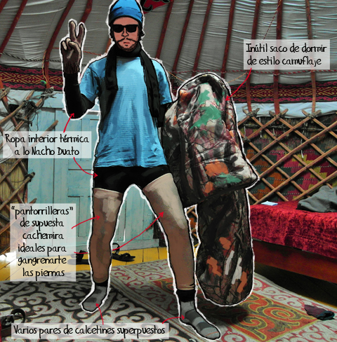 Por fortuna, en uno de mis momentos de mayor ansiedad, apareció por allí Arnau, un simpático catalán que dormía en el mismo campo de yurtas que yo y llevaba más de un mes recorriendo Mongolia solo y en bicicleta. Durante aquel largo fin de semana le confié todos mis problemas, y no solo porque viniéramos del mismo país (llámenlo estado si así lo prefieren), sino porque desde el principio me inspiró confianza. Además, sus fatigosas luchas contra la estepa le habían dotado de una tranquilidad y sabiduría que ni mi profesor de yoga. Fue él que una tarde, con acento del Alt Empordà, me dijo muy solemne: “tú has empezado este viaje solo y solo tienes que terminarlo”. Y vi que, aunque supusiera un gasto más que extra, tenía toda la razón. También fue él el que me sugirió que para encontrar los artículos de montaña me acercara al mercado. Y en esto, aunque no sé si fue una buena idea, le hice caso también.